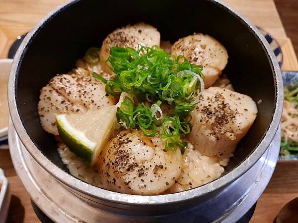 上面的干貝足足有6顆之多阿!有用黑胡椒跟奶油煎過,吃起來也都很鮮甜很優質,飯則是拌了蒜頭跟奶油的飯,味道上也很足夠。